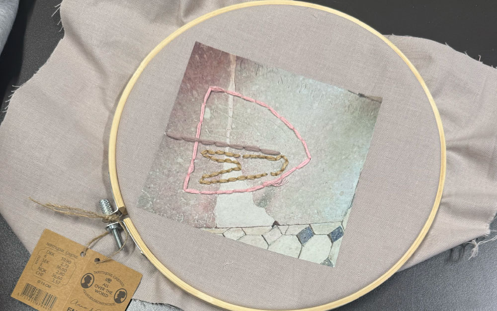 Forløbet Stof til eftertanke udvikles i indeværende skoleår med børneperspektivet i centrum. Forløbets mål er at give eleverne i 5.-6. klasse mulighed via oplevelse, sanser og praksis formåen at få øje på kirkens bygninger og dens funktioner. Eleverne tager med deres mobiltelefoner billeder i deres lokale kirke, billederne applikeres af skoletjenesten over på stof, hvorefter eleverne broderer motiverne.